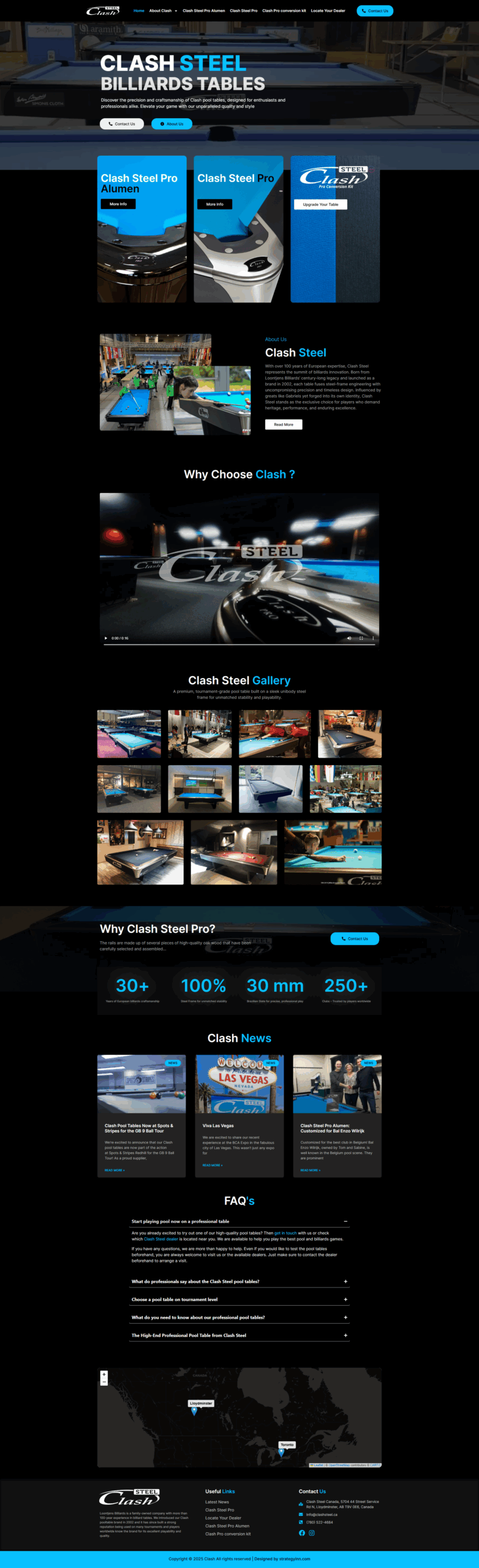 Clash Steel Canada partnered with us to revamp their website and showcase their premium pool tables…